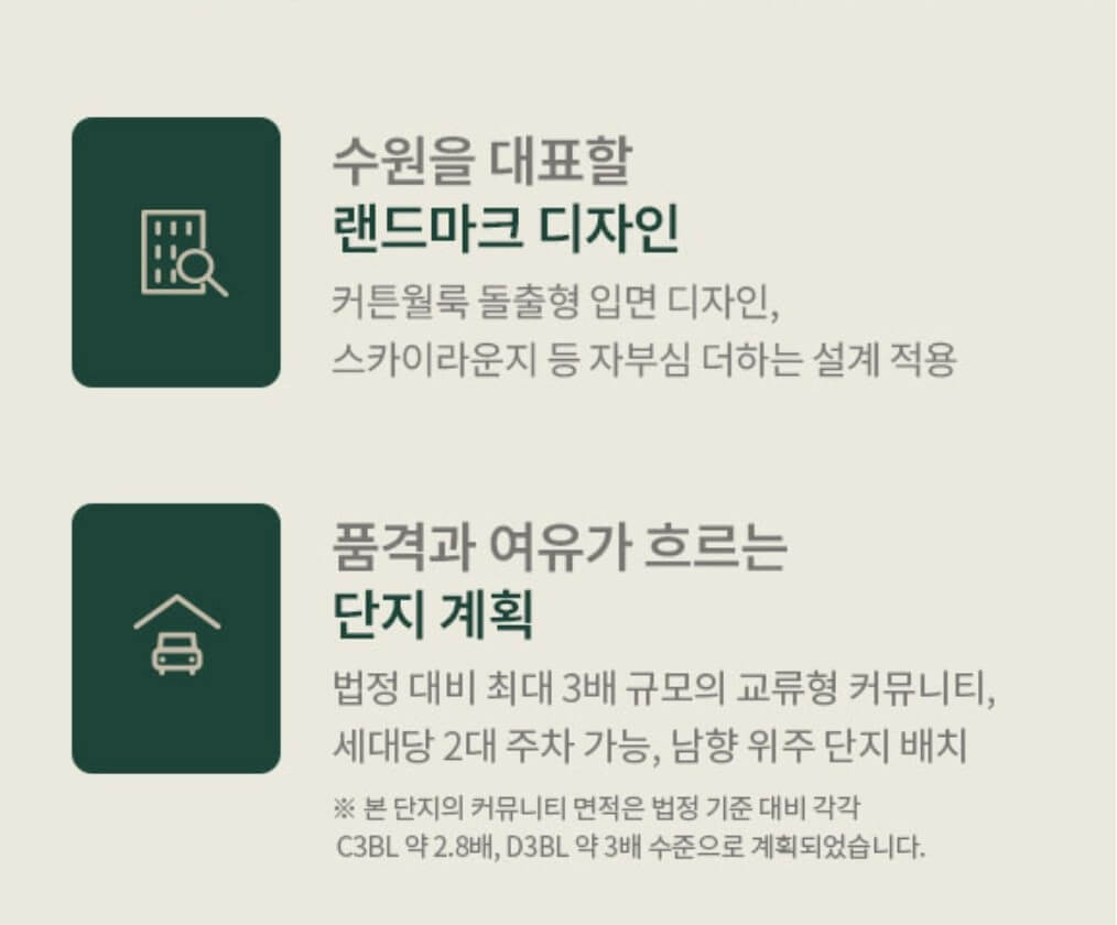 엘리프한신더휴 수원의 최고 강점은 교육 환경입니다. 단지 바로 앞에 초등학교 부지가 예정돼 있어 ‘초품아’ 입지를 갖습니다. 인근에 중학교도 신설 예정입니다. 이외에 반경 1km 내에 초‧중‧고가 고루 분포돼 있어 도보로 통학할 수 있습니다.